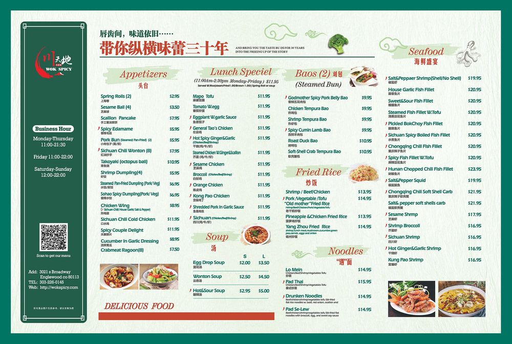 Welcome to Wok Spicy, the vibrant culinary gem located at 3021 S Broadway, Englewood, CO. Specializing in authentic Chinese cuisine, Wok Spicy offers a tantalizing menu filled with mouthwatering dishes. Highlights include their Chef’s Special, Chow Fun with Beef, a savory stir-fried noodle delight that perfectly balances texture and flavor. Seafood lovers will find joy in dishes like the Sichuan Spicy Boiled Fish Fillet and the Salt & Pepper Squid, while pork aficionados can indulge in the rich Hunan Pork Belly.